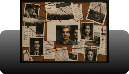 Sinta a tensão de uma investigação real, onde cada descoberta e cada nova pista aumentam o suspense e te deixam mais perto da verdade.